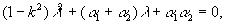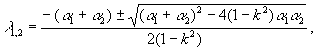 Корни l1,2 определим из характеристического уравнения, которое после раскрытия характеристического определителя приводится к виду