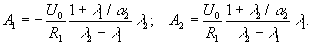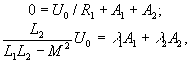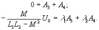 Здесь из первого уравнения следует, что A4 = – A3, из второго уравнения найдем A3 = – A4 = U0M/((l2 – l1)(L1L2 – M2)).
