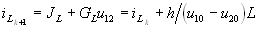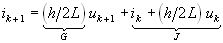 Соответствующая схема приведена на рис. 18.3, б. Из формулы метода трапеций получим связь ik+1+1 – ik = (h/2L)(uk + uk+1), из которой следует
