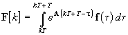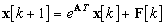 Применим это соотношение к k-му интервалу процесса в импульсной системе, делая замену t = 0 на kT (начало интервала), t на (k + 1)T (конец интервала). Векторы x, отвечающие началу и концу интервала, обозначим соответственно x[k] и x[k + 1]. В результате получим матричное уравнение