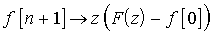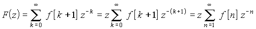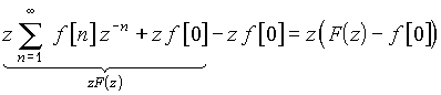 В последнем равенстве мы произвели замену k + 1 = n. Добавление и вычитание из последнего результата величины zf[0] позволяет выделить в нем z-изображение исходной последовательности