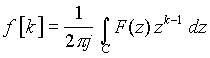 Для вывода формулы обратного z-преобразования нахождения последовательности f[k] по ее изображению F(z) используем выражение для коэффициентов ряда Лорана. Поскольку результат прямого преобразования представляет собой ряд Лорана в окрестности бесконечно удаленной точки, то для вычисления коэффициентов этого ряда имеем формулу