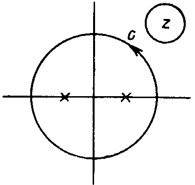 где интегрирование производится по контуру с, охватывающему все особые точки функции F(z), например, окружность (рис. 21.1).