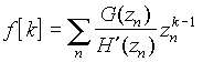где zn – корни знаменателя F(z), т. е. уравнения H(z) = 0, а H'(z) = dH/dz. Легко увидеть, что и эта формула является аналогом теоремы разложения для преобразования Лапласа.