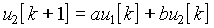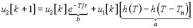 Перейдем к z-изображениям членов уравнения: u1[k] ® U1(z); u2[k] ® U2(z). Согласно правилу изображения смещенной последовательности, найдем u2[k + 1] ® z(U2(z) – u2[0]) = zU2(z) (так как u2[0] напряжение на выходе цепи в момент подачи первого импульса равно нулю).
