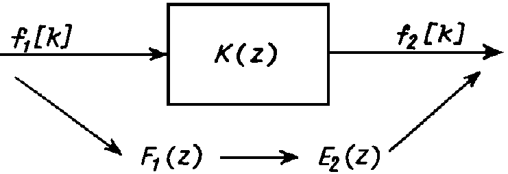 При расчете переходных процессов в цепях с непрерывными сигналами при нулевых начальных условиях дифференциальные уравнения не используются, а изображение выходного сигнала F2(s) выражается с помощью передаточной функции K(s) через изображение входного сигнала F2(s). Такой же подход без использования разностных уравнений возможен и при анализе импульсных систем c нулевыми начальными условиями.