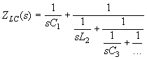 Если ZLC(s) имеет полюс при s = 0, то разложение входной функции LC-цепи в цепную дробь можно осуществить и иначе, начиная деление не со старших, а с младших степеней полиномов числителя и знаменателя. На начальном этапе деление младших степеней числителя и знаменателя приводит к выделению емкости 1/sC1, включенной последовательно с остальной частью цепи. Последовательное применение этого же приема к величине, обратной остатку, приводит к окончательному представлению