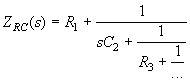 Наличие полюса при s = 0 у входного сопротивления RС-цепи позволяет выделить на начальном этапе слагаемое вида 1/sС1. Для этого деление числителя на знаменатель осуществляется, начиная с младших степеней. Продолжение этого процесса по отношению к величине, обратной остатку, даст следующий член дроби, не содержащий s. В результате последовательного применения указанного приема получим цепную дробь