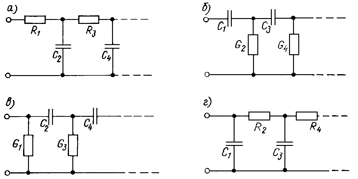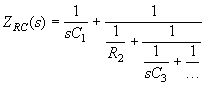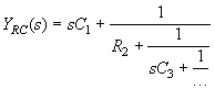Другие варианты цепных схем RС-цепей можно получить, рассматривая выражение для операторной проводимости цепи. Если проводимость цепи при s = 0 отлична от нуля, то деление полиномов числителя и знаменателя, начатое с младших членов, позволяет выделить проводимость, включенную параллельно остальной части схемы. На дальнейших этапах выделяем последовательно включенные емкости и параллельно включенные проводимости и получаем