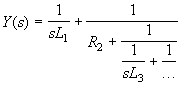Если рассматривается входная проводимость LC-цепи, имеющая полюс при s = 0 (цепь обладает нулевым сопротивлением на постоянном токе), то деление младших степеней числителя и знаменателя приводит к выделению слагаемого 1/sL1, соответствующего индуктивности, включенной параллельно остальной части цепи. Продолжение этого процесса приводит к представлению