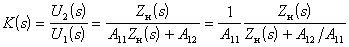 Определим далее передаточную функцию рассматриваемого четырехполюсника в режиме согласованной нагрузки. В общем случае — при нагрузке на произвольное сопротивление Zн(s) — имеем