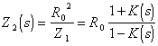 Использование связи между Z1(s) и Z2(s) приводит к формуле для Z2(s)