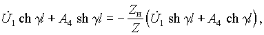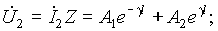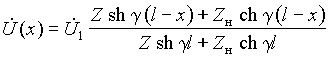 Для расчета распределения напряжения и тока вдоль линии в общем случае используем граничные условия в начале (при