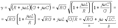 Все три перечисленные условия независимость от частоты Z и a и линейная зависимость b(w) выполняются, если параметры линии R, L, C, G удовлетворяют условию