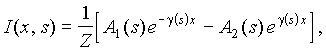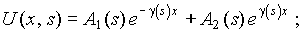 Подстановка в эти условия решений для напряжения и тока U(x, s) и I(x, s) приводит их к системе, из которой определяются A1(s) и A2(s), что позволяет получить изображения для напряжения и тока, удовлетворяющие граничным условиям. Однако в данном случае изображения и не являются рациональными дробями, как при расчете цепей с сосредоточенными параметрами. Тем не менее, для нахождения их оригиналов возможно применение теоремы разложения, если они представляют однозначные функции переменной s.