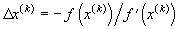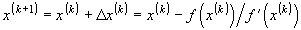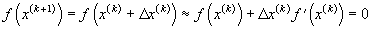 Итерационная процедура метода базируется на уточнении приближенного решения, полученного на k-ой итерации, путем линеаризации функции f(x) в окрестности решения аппроксимации ее начальным отрезком ряда Тейлора.