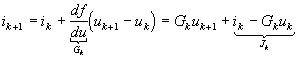 Для нелинейного элемента, имеющего характеристику i(u) = f(u), линеаризация на k-го отрезка характеристики приводит к соотношению