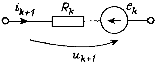 Замена нелинейных резисторов цепи их дискретными эквивалентами приводит к линейной цепи, в которой можно применять все известные методы расчета таких цепей. После определения ik+1 и uk+1 их используют для пересчета параметров цепи и осуществления следующей итерации.