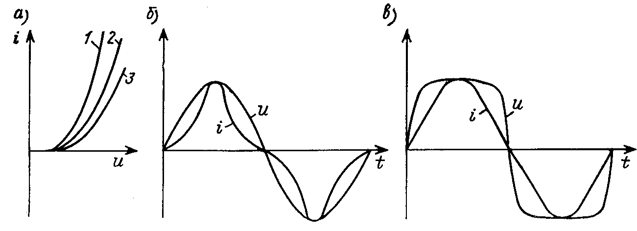 29.1. ИНЕРЦИОННЫЕ И БЕЗЫНЕРЦИОННЫЕ НЕЛИНЕЙНЫЕ ЭЛЕМЕНТЫ. КРИВЫЕ ТОКА И НАПРЯЖЕНИЯ НА НЕЛИНЕЙНЫХ ЭЛЕМЕНТАХ, ИХ СПЕКТРАЛЬНЫЙ СОСТАВ