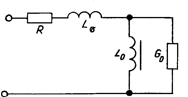 Таким образом, для данного сердечника потери на вихревые токи пропорциональны квадрату частоты и амплитуды индукции или квадрату напряжения, приложенного к зажимам катушки. В связи с этим схема замещения катушки (рис. 29.13) с ферромагнитным сердечником содержит кроме индуктивности резистивный элемент, учитывающий потери в сердечнике. |