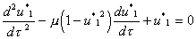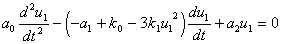 Рассмотрим случай, когда коэффициент усиления усилителя с повышением входного напряжения уменьшается. Простейшую аппроксимацию такой характеристики можно выразить кубическим полиномом u2 = f(u1) = k0 - k1 u13, в котором оба коэффициента k0 и k1 положительны. При такой аппроксимации для производной df/du1 имеем квадратичную зависимость df/du1= k0 - 3k1u12. С учетом этой зависимости перепишем уравнение для u1 в виде: