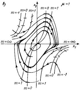 Исследуем сначала уравнение Ван-дер-Поля с помощью фазовой плоскости. Принимая в качестве фазовых переменных x1 = u*1; x2 = du*1/dt, запишем вместо уравнения (30.1) систему уравнений в нормальной форме: