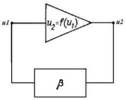 Рассмотрим автоколебательную активную цепь, включающую усилитель с нелинейной зависимостью выходного напряжения от входного u2 = f(u1), охваченный линейной цепью обратной связи (рис. 30.13). Пусть она обладает передаточной функцией b(s) = U1(s)/ U2(s) = s/(a0s2 + a1s + a2). Такую передаточную функцию имеют цепи с двумя динамическими элементами, например, RC-цепи (см. рис. 23.6, в-д), а также RLC-цепи (см. рис. 23.8). |