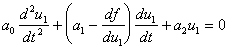 С учетом нелинейной характеристики усилителя выразим правую часть уравнения в виде du2/dt = (df/du1)(du1/dt). Это приводит к нелинейному дифференциальному уравнению относительно u1: