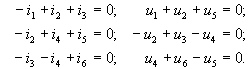 Аналогично группируются и компоненты вектора напряжений ветвей u.