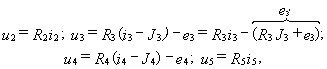 Компонентные уравнения для составных ветвей 2, 3, 4 и резистивной ветви 5 имеют вид (см. п. 2.3)