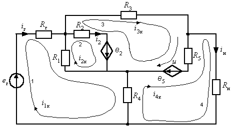 Подставив соотношения для i2 и u5 в систему контурных уравнений и сгруппировав члены, окончательно получим: