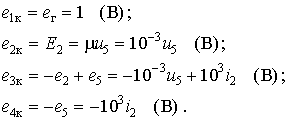 Выразим управляющие ток i2 и напряжение u5 через контурные токи, представляя токи в ветвях как алгебраическую сумму контурных токов, протекающих по этим ветвям: