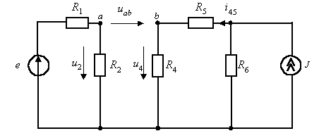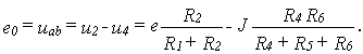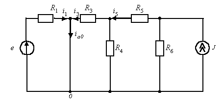 Принимая значения сопротивлений цепи равными друг другу R1 = R2 = R3 = R4 = R5 = R6 = R, получим e0 = e/2 – JR/3, R0 = 7R/6.