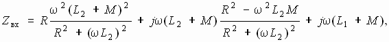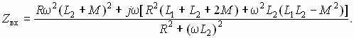 где Z1 = jω(L1 + M), Z2 = jω(L2 + M), Z3 = R - jωM. Разделяя во втором слагаемом этого выражения вещественную и мнимую части, придем к результату: