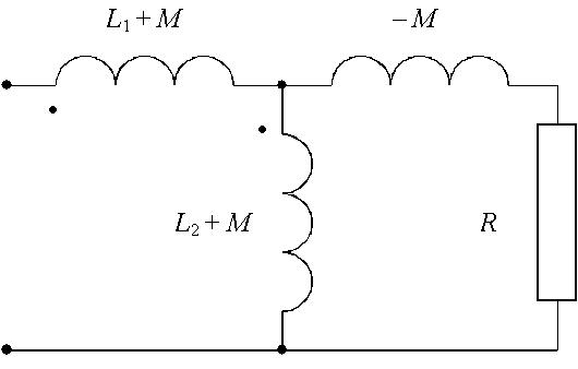 Задача 9.2. Определить эквивалентные параметры цепи с индуктивно связанными катушками, изображенной на рис. 9.8. |