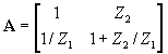, следовательно, А12 = Z2, а А22 = 1+ Z2/Z1.