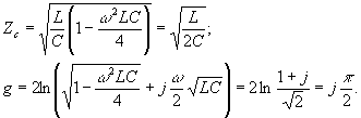 Задача 11.3. Определить характеристические параметры четырехполюсника, рассмотренного в задаче 11.1, принимая в качестве элементов схемы Z1 = 1/jωC, Z2 = jωL. |