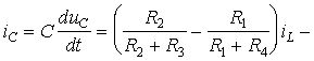 Для определения остальных значений токов и напряжений в рассматриваемой цепи нет необходимости снова решать определяющие их дифференциальные уравнения: подстановка найденного выражения для iL в первое уравнение состояния позволяет определить uC. Токи и напряжения цепи, не являющиеся переменными состояния, выражаются через iL и uC с помощью алгебраических соотношений, вытекающих из законов Кирхгофа и компонентных уравнений резистивных ветвей.
