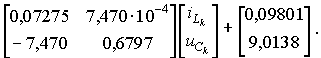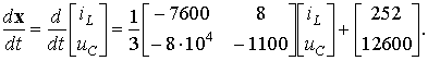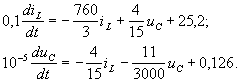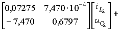 Перепишем систему уравнений состояния в матричной форме, разделив первое уравнение на L, а второе — на С: