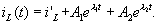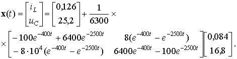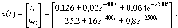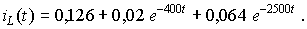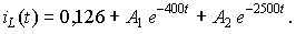 Решая это квадратное уравнение, получим l1 = – 400; l2 = – 2500. С учетом численного значения частного решения iL' = 0,126 А общее решение для тока iL будет иметь вид: