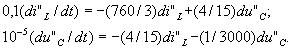 После подстановки в нее экспоненциальных частных решений iL" = b1"elt, uC"= b2"elt, дифференцирования и приведения подобных членов получим систему однородных алгебраических уравнений