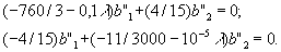 Она имеет нетривиальное решение при равенстве нулю главного определителя