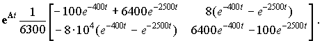 Решение получим с помощью матричной формулы (см. п. 17.2). Для нахождения аналитического выражения матричной экспоненты еAt определим сначала корни характеристического уравнения — собственные числа матрицы А: det [А – l 1] = 0. После подстановки численных значений это уравнение принимает вид