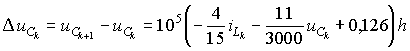 Применение явного метода Эйлера к полученным ранее уравнениям состояния (Задача 14.1) сводится к последовательному вычислению приращений переменных состояния: