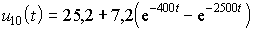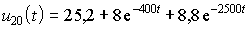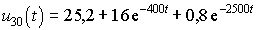 После выделения целой части дроби, равной 1, применение теоремы разложения ко второму слагаемому приводит к оригиналу искомого напряжения в виде