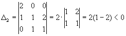 Для квадратного уравнения необходимым и достаточным условием нахождения корней в левой полуплоскости Re(λk) < 0 является положительность всех его коэффициентов аk. Поэтому цепь с характеристическим уравнением а) устойчива, а б) и в) — нет. Для уравнений более высоких порядков условие положительности всех коэффициентов является необходимой, но недостаточной. Поэтому в случае г) осуществим проверку по критерию Гурвица. Для рассматриваемого уравнения третьего порядка определитель Гурвица имеет вид