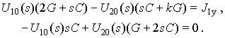 Цепь устойчива, если все корни характеристического уравнения лежат в левой полуплоскости. Для определения их положения запишем для схемы узловые уравнения в операторной форме: