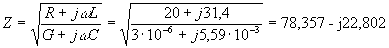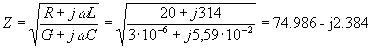 Z = 74,953 Ом, γ = jβ = j4,1914 1/км, λ = 1,5 км,