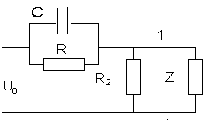 Связь напряжения и тока прямой волны uφ и iφ: uφ = iφZ показывает, что влияние линии на формирование прямой волны может быть учтено введением в расчетную схему, состоящую из источника U0 и входного четырехполюсника, резистора с сопротивлением, равным волновому, подключенного к выходу четырехполюсника (рис. П24.2).