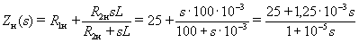 где Zн(s) — операторное входное сопротивление нагрузки. Для изображенной на рис. П24.1 схемы нагрузки имеем: